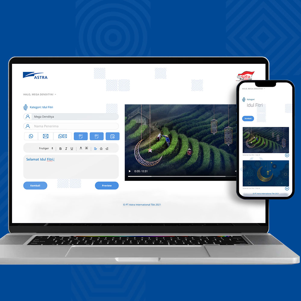 Website for creating and sending e-greeting cards with custom design options to employees and partners, developed for Astra International.