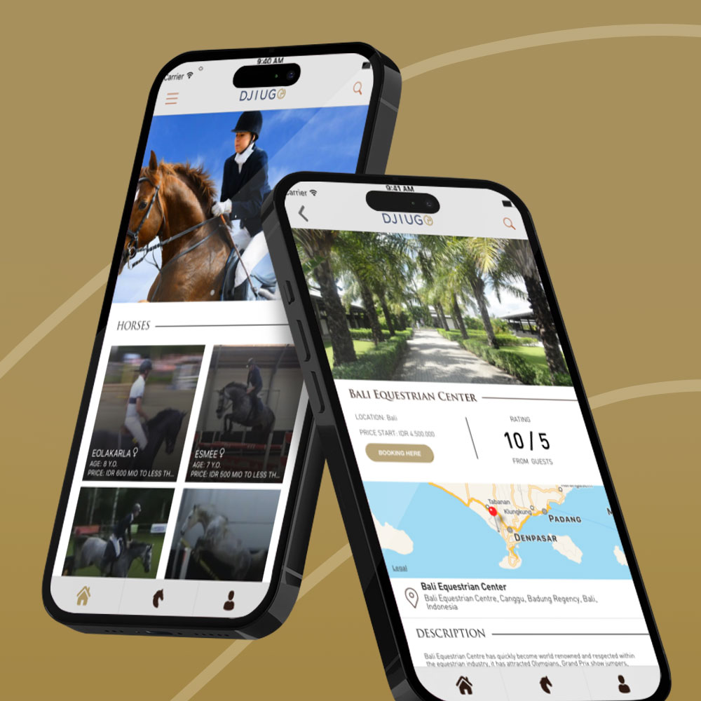 Mobile application for buying and selling horses, finding trainers, reading horse information, and discovering horse events, developed for Djiugo.